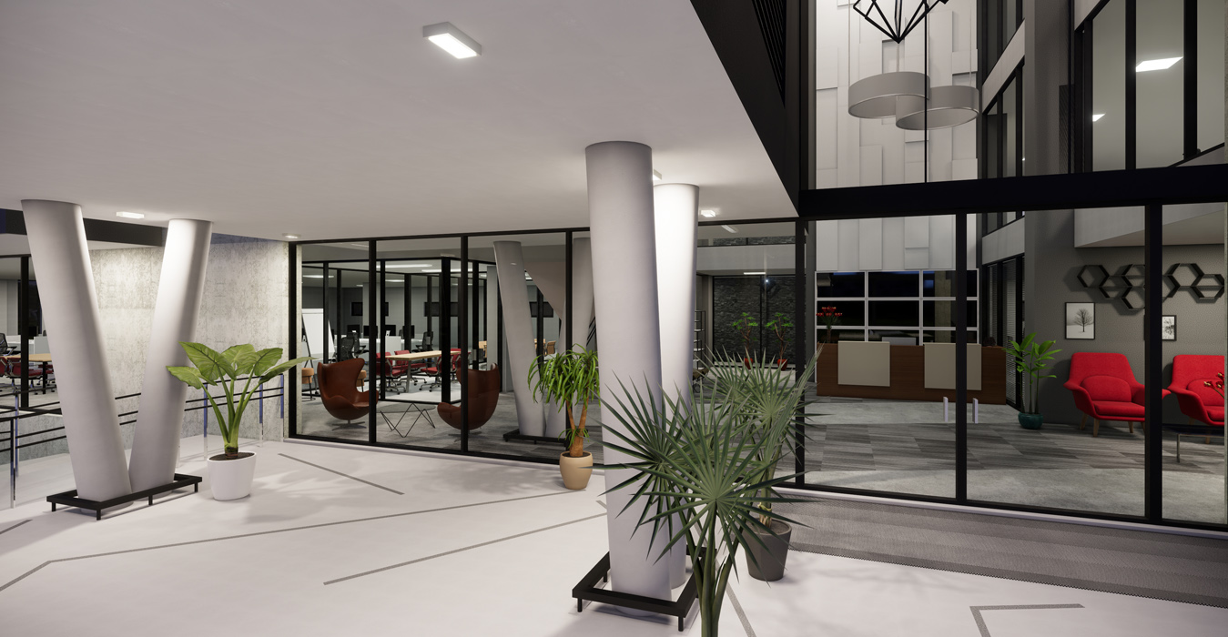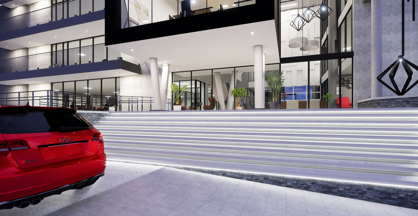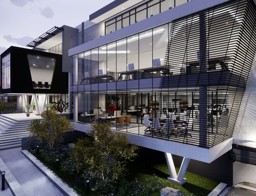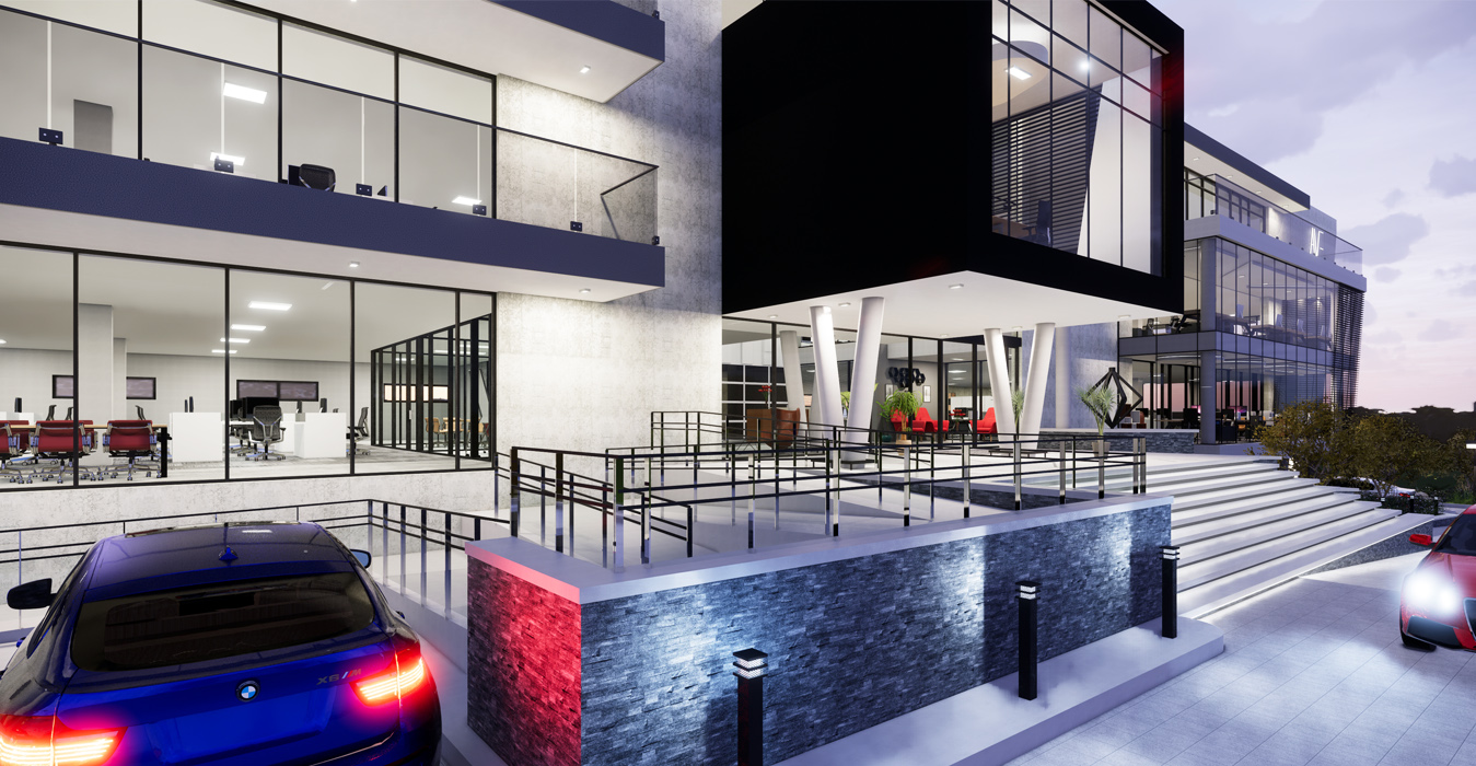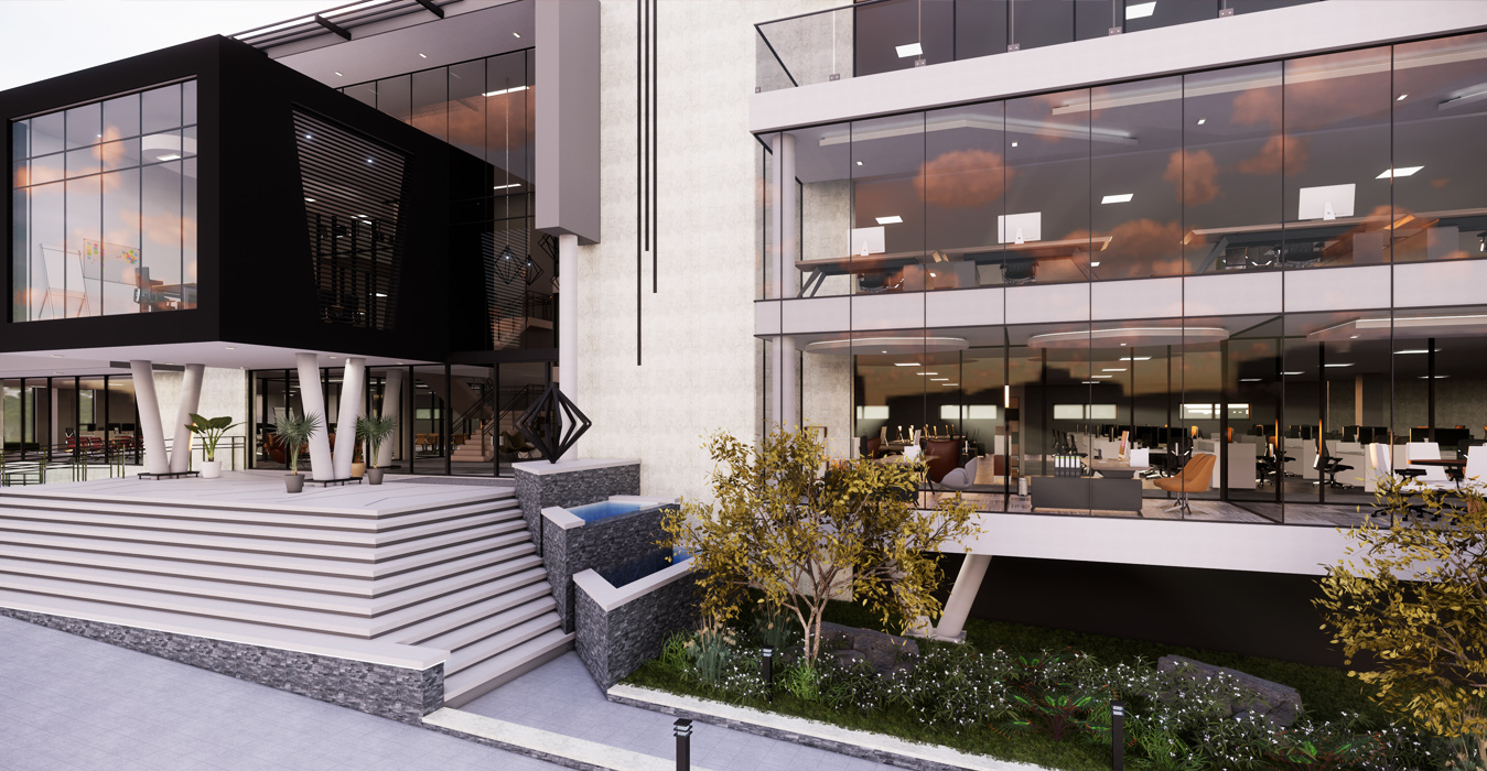 Diamond Walk PrecinctThis exciting landmark development comprises of 1 semi-basement parking and 3 office levels above ground with over 4500m² of Rentable Area. The design makes use of feature landscape berms and grand staircases complimenting the substantial slope across the site. With a commercially-minded approach, the building has been designed with flexibility in mind incorporating a unique and contemporary architecture. Ample natural light enters the atrium through the glass façade and natural landscaping is brought into the atrium with feature planters. Glass façades which are north facing have been designed in accordance to improve the thermal performance of the building, using a combination of single and double-glazing. With an objective to create a place that redefines the way we experience our work environment, the design promotes a pleasant and healthy environment encouraging interaction by the use of one vertical circulation and service core. The central concept of this development is based on an entirely new vision for the future of property development in South Africa.
